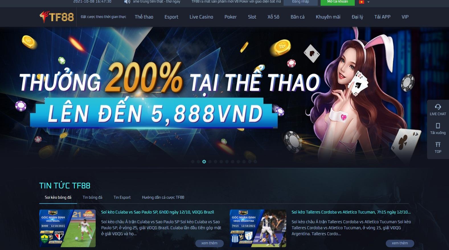 Chương trình hoàn tiền trên TF88 là một trong những ưu đãi hấp dẫn nhất, cho phép người chơi nhận lại một phần phần trăm số tiền thua cược, thường từ 5% đến 20%, tùy thuộc vào cấp độ thành viên. Ví dụ, nếu bạn thua 1.000.000 VND trong tuần, bạn có thể nhận lại 100.000 VND, giúp giảm thiểu rủi ro và khuyến khích tiếp tục chơi. Đây là cách hiệu quả để TF88 giữ chân khách hàng, đặc biệt trong các giai đoạn thua lỗ. Hơn nữa, các chương trình khuyến mãi hàng tuần thường kết hợp với sự kiện thể thao hoặc game mới, tạo nên sự đa dạng và bất ngờ.