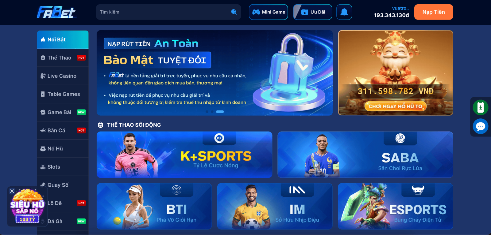 Nạp tiền rút tiền fabet đóng vai trò then chốt trong việc giúp người dùng truy cập vào thế giới cá cược trực tuyến một cách hiệu quả. Đây không chỉ là quá trình giao dịch tài chính đơn thuần mà còn là cầu nối giữa người chơi và các cơ hội thắng lớn trên Fabet. Với sự phát triển của công nghệ, Fabet đã tích hợp nhiều phương thức thanh toán hiện đại, đảm bảo tính bảo mật và tốc độ xử lý nhanh chóng. Điều này giúp người dùng tập trung vào việc tận hưởng các trò chơi thay vì lo lắng về vấn đề tài chính.